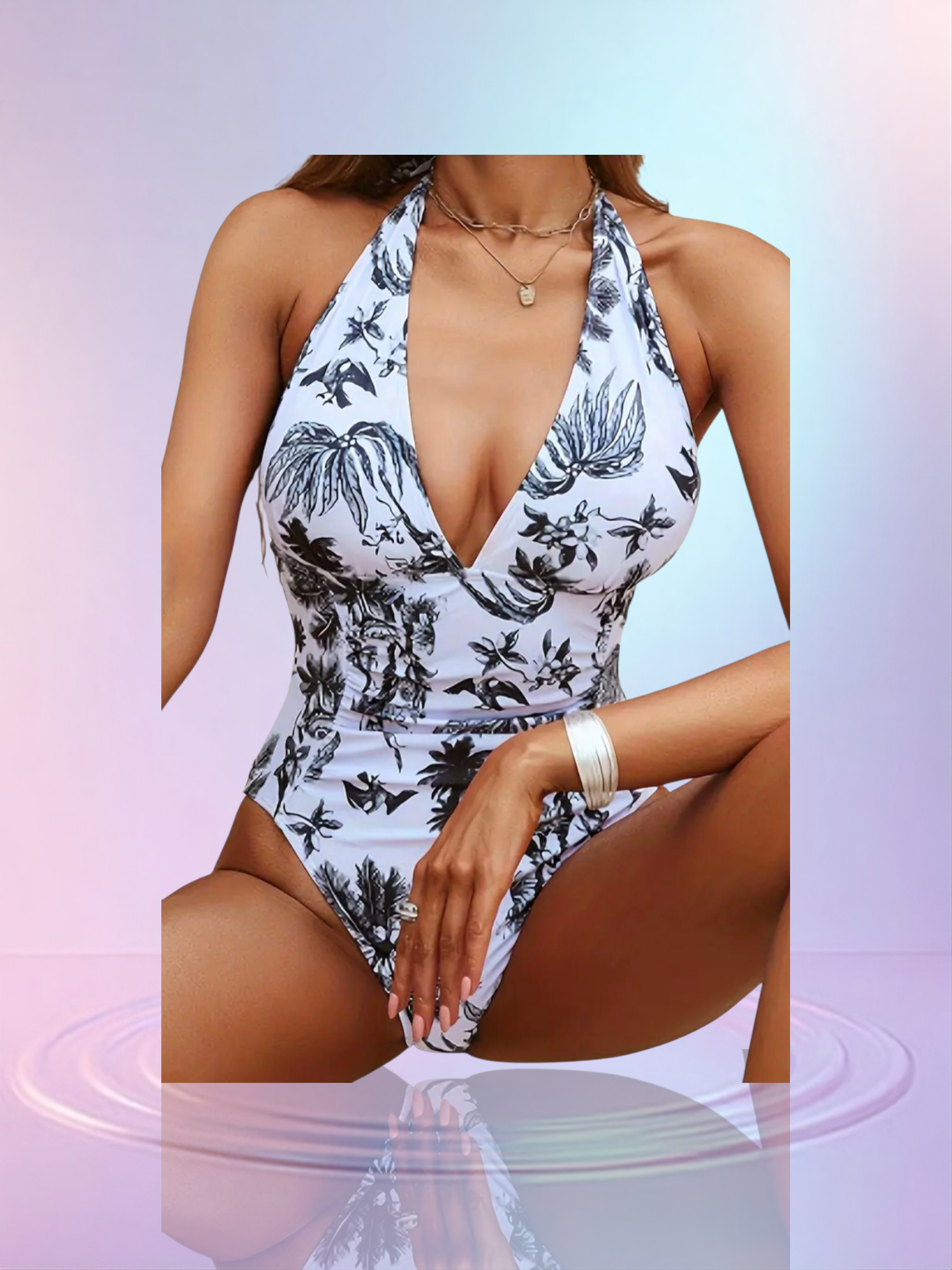 Dit charmante badpak combineert een tijdloze witte basis met een elegante zwarte bloemenprint voor een speelse en vrouwelijke look. De open rug zorgt voor een verrassend sexy detail, terwijl het badpak comfortabel en ondersteunend zit.