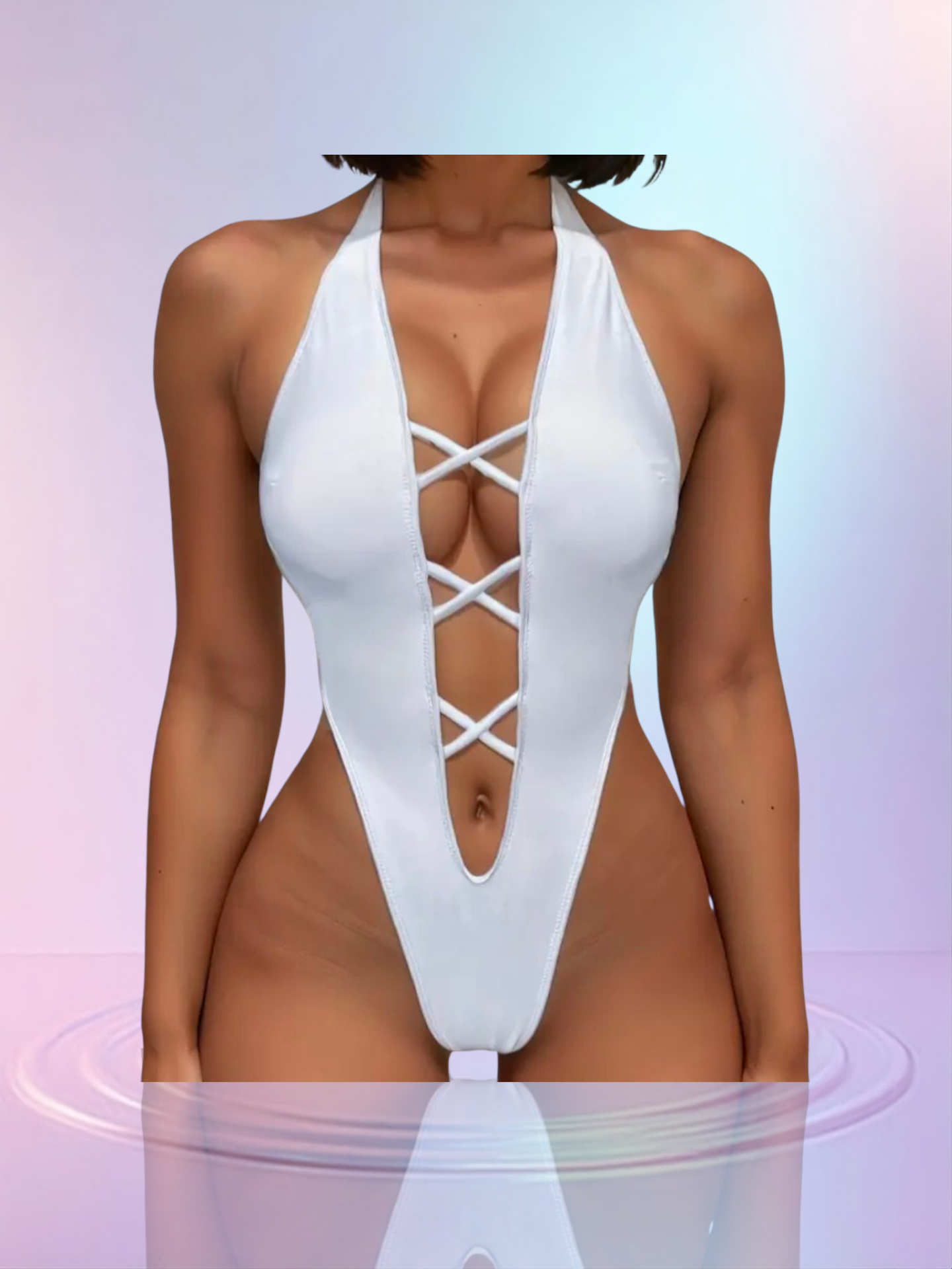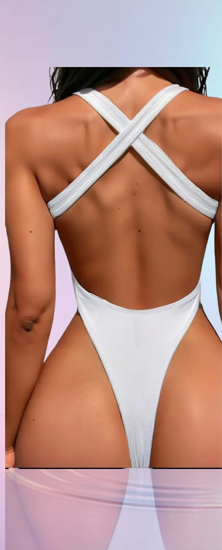 Voor vrouwen en meiden met lef: dit witte stringbadpak is een statement op zichzelf. De open voorkant onthult precies genoeg om de verbeelding te prikkelen, terwijl de minimale bedekking en hoge uitsnijdingen je silhouet extra krachtig laten uitkomen.