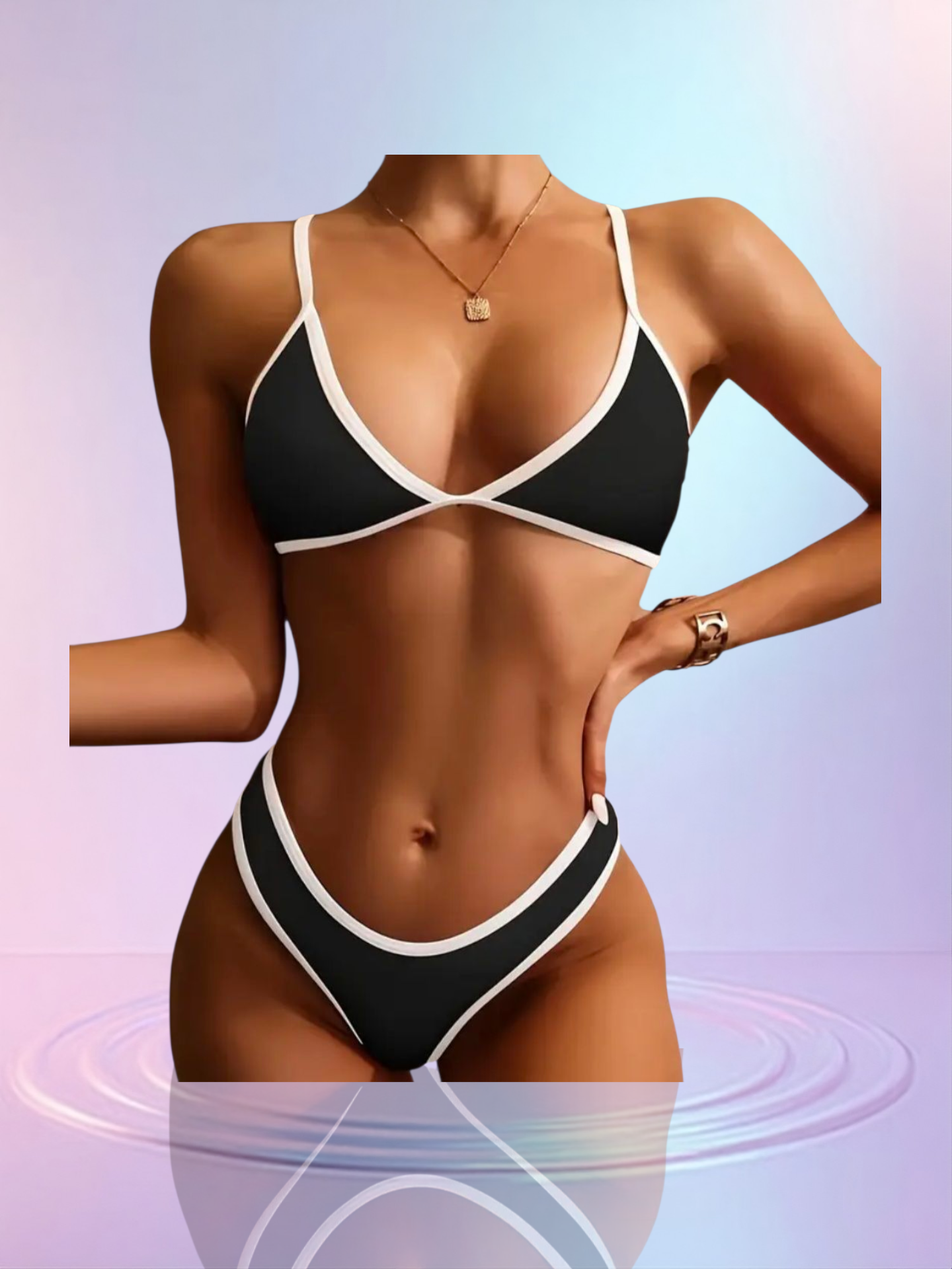 Ga stijlvol en zelfverzekerd de zomer in met deze zwart-witte stringbikini van Stuff For Everyone. Het minimalistische design met een tijdloze kleurencombinatie geeft deze bikini een chique en moderne uitstraling. De triangel-top is verstelbaar voor een perfecte pasvorm, terwijl de stringslip zorgt voor een verleidelijke en comfortabele look.