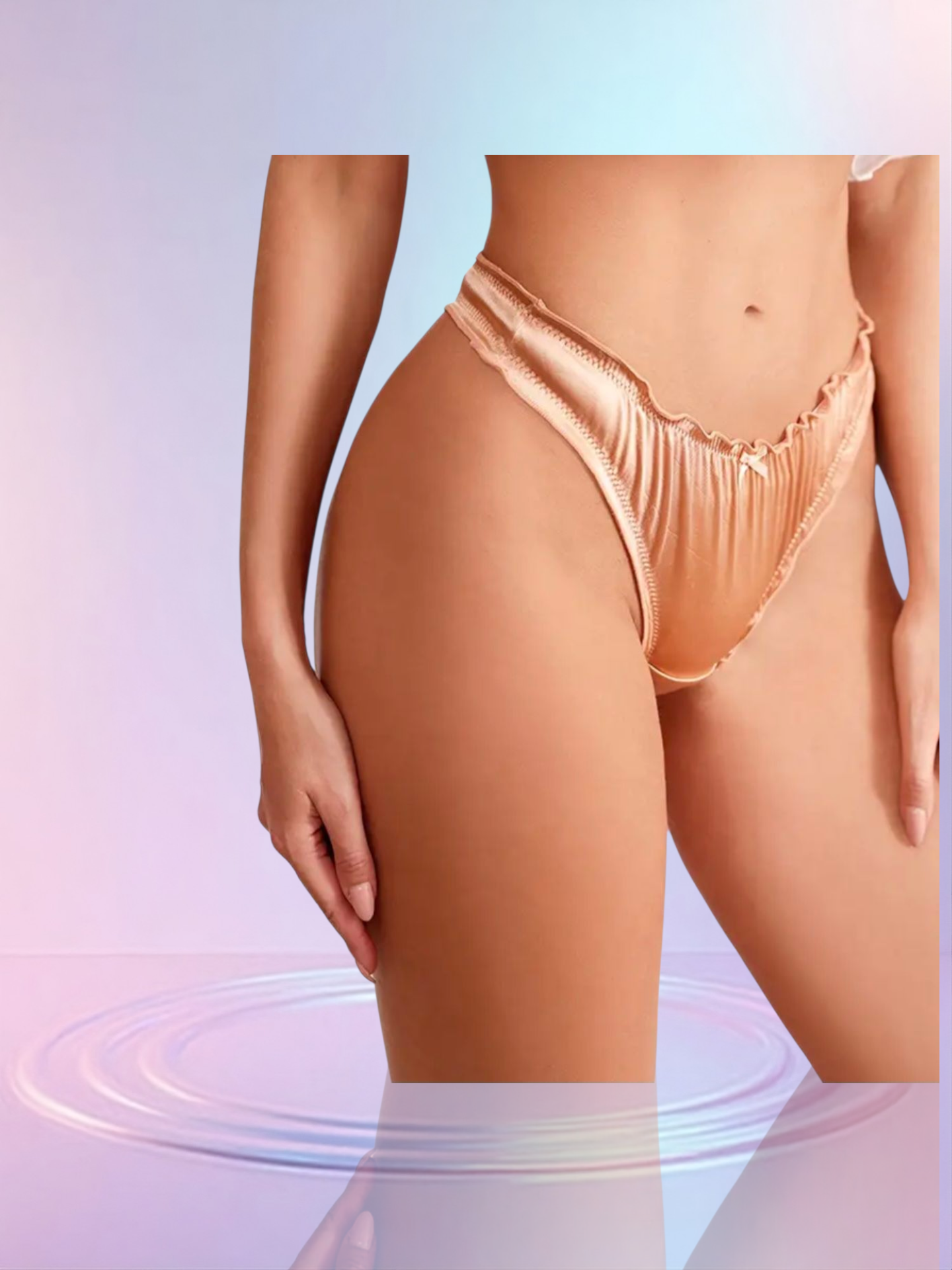 Voel je onweerstaanbaar in deze super sexy satijnen string met een elegant hoog uitgesneden model. De glanzende satijnstof voelt zijdezacht aan op de huid en zorgt voor een luxe uitstraling. De hoge snit accentueert je benen en taille, terwijl de minimalistische achterkant subtiel je rondingen benadrukt.